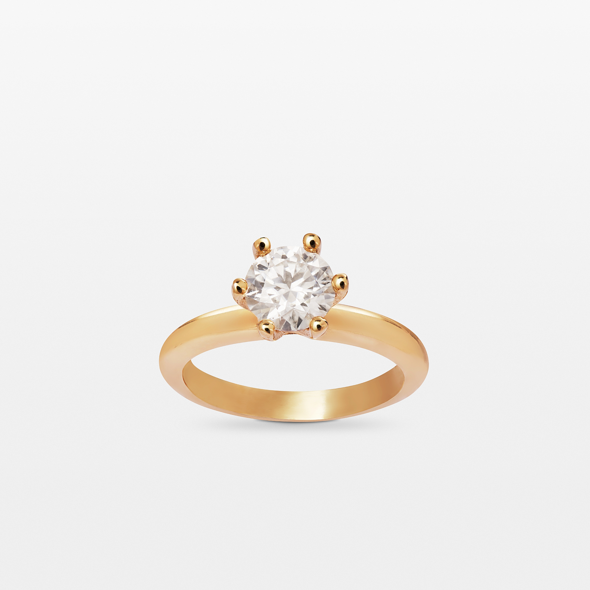 Pierścionek wykonany ręcznie ze złota próby 585 z centralnie oprawionym diamentem laboratoryjnym w szlifie brylantowym o masie 1,o1 ct i czystości VS2.